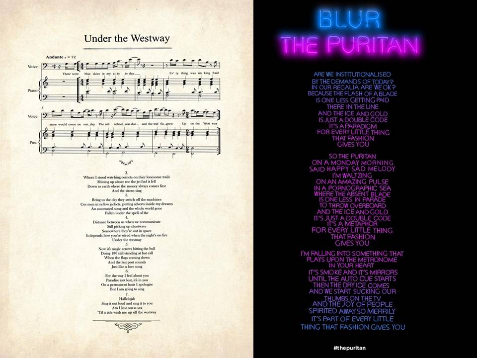 Almost two years on from their last new material ( ‘Fool’s Day’ on RSD 2010 ) Damon and his partners return to their soft side with new song ‘Under the Westway ‘, this, with the energetic and electronic ‘The Puritan .’ form new Blur´s single, available through iTunes, in the run up to their massive ’21’ boxset and huge Hyde Park gig.